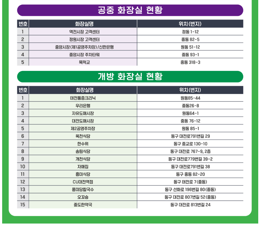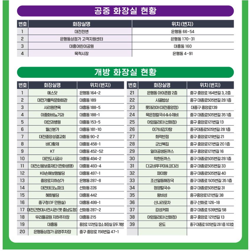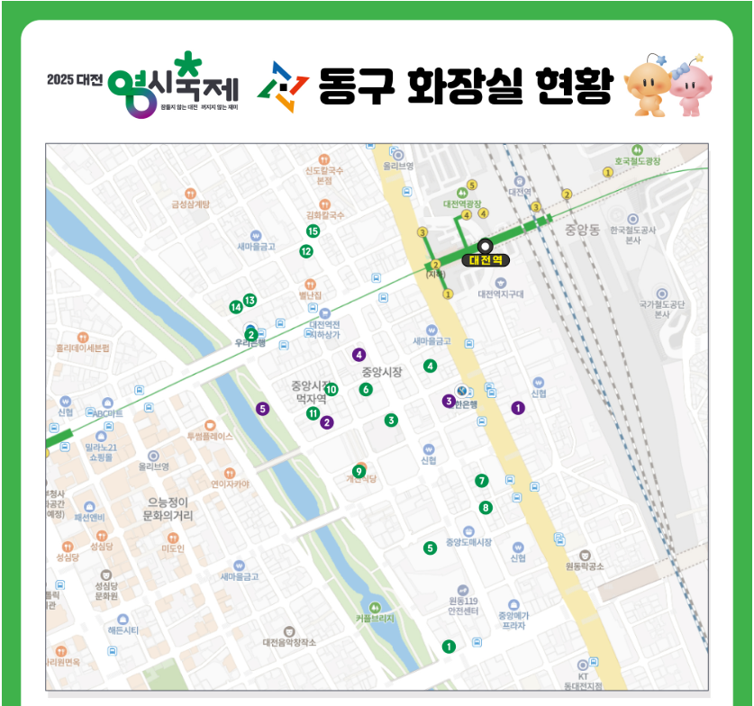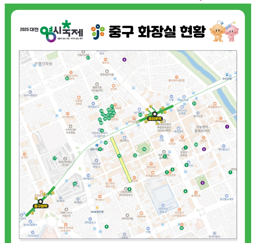 - 공중화장실(중구·동구 일대) 개방 — 행사구간 내 다수 설치(상세 지도 및 위치는 공식 공지 참조).
